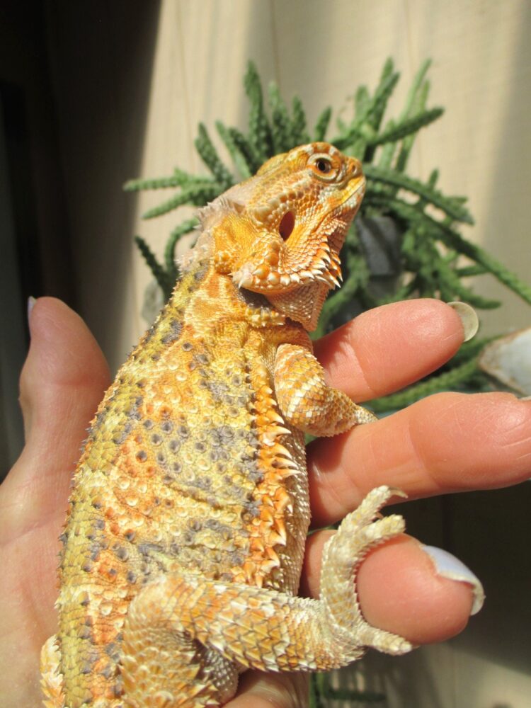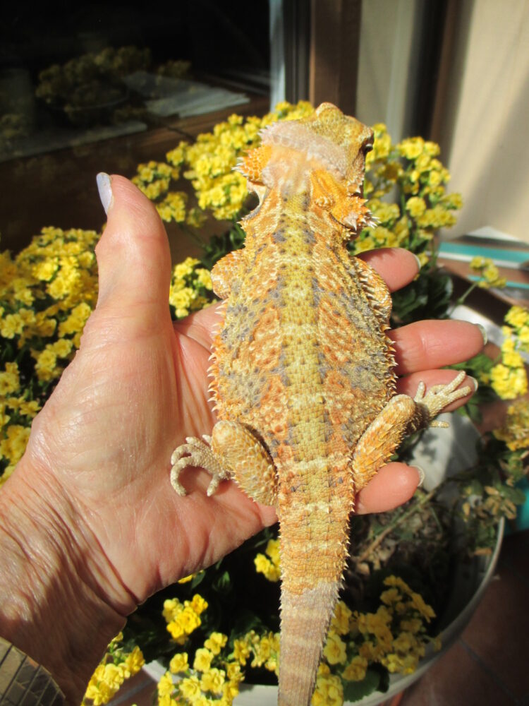 Tangerines can be predominantly Orange with Yellow touches or just the opposite with a large amount of yellow with orange as highlights. Some can also have hints of pink and lime green along the back and then there are the dark gray and black highlights between the pattern in some. The Tangerine phase is one of our favorites because of the wonderful range in color variation from dragon to dragon. It’s all in what strikes your fancy.